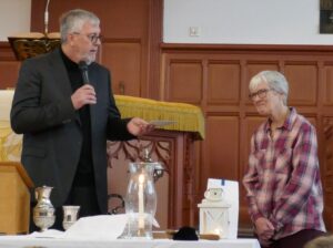 Op 16 november 2025 nam Caroline Schaap afscheid als vaste organist na een dienstverband van 47 jaar!! Zij kreeg van de landelijke kerk een prachtig draaginsigne.Na afloop van de dienst werd zij in het zonnetje gezet.